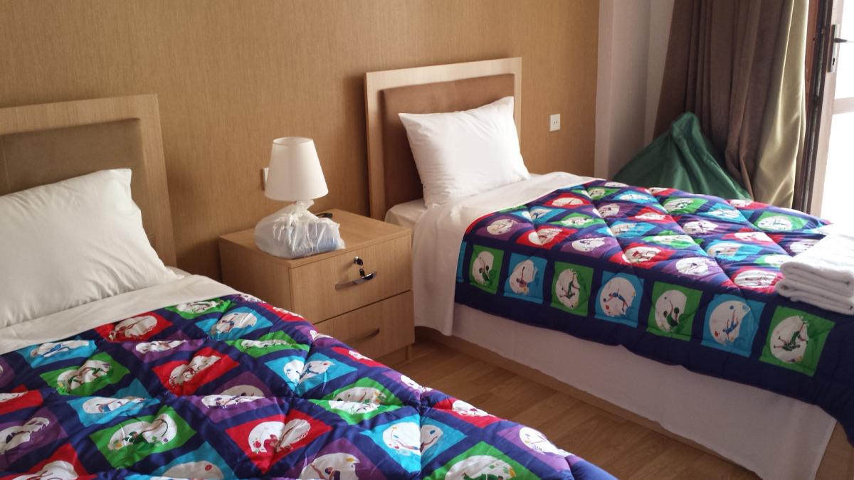 Българите са настанени в 13-етажния блок 2, в който в два от входовете заемат апартаменти от 3 до 10 етаж. Съседи встрани са отборите на Турция и Испания, а над нас са молдовците. Апартаментите са с по 4 отделни стаи, вестибюл и една баня с тоалетна. Мебилировката за всеки е спартанска – легло, нощно шкафче, гардеробче, сушилка и огледало. Щабът на делегацията ни е разположен в отделен апартамент.