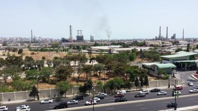 С гледка към огромни горящи огньове на петролни рафинерии са стаите на българите в селото на спортистите на европейските игри в Баку.