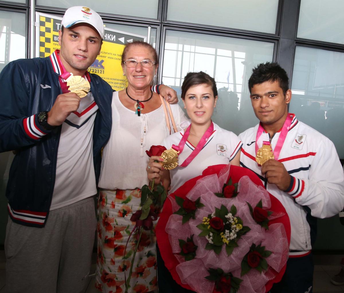 Двете легенди на български спорт пожелаха на младите ни таланти много бъдещи победи, медали и рекорди. Сред посрещачите бе и зам.министърът на младежта и спорта Йордан Йовчев, зам.-председателят на БОК и президент на БФ Бокс Красимир Инински, президентът на БФ Гимнастика и член на Изпълкома на БОК Красимир Дунев, президентът на БФ Вдигане на тежести Неделчо Колев, както и много други ръководители и деятели на българския спорт.