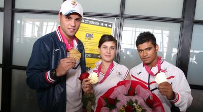 Стотици фенове, роднини, приятели, функционери и журналисти посрещнаха спортните герои на България при пристигането им от ІІ младежки олимпийски игри. Най-търсени за снимки, поздравления и автографи на Аерогара София бяха, разбира се, 11 ни медалисти, сред които тримата шампиони Божидар Андреев, Лидия Ненчева и БлагойНайденов.
