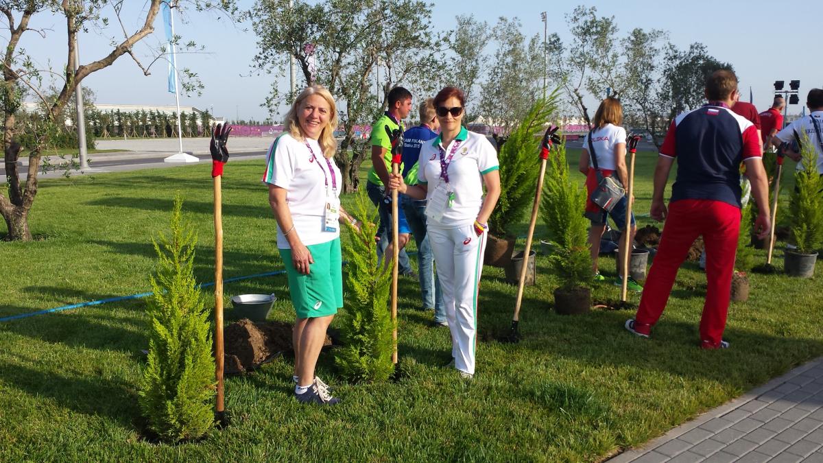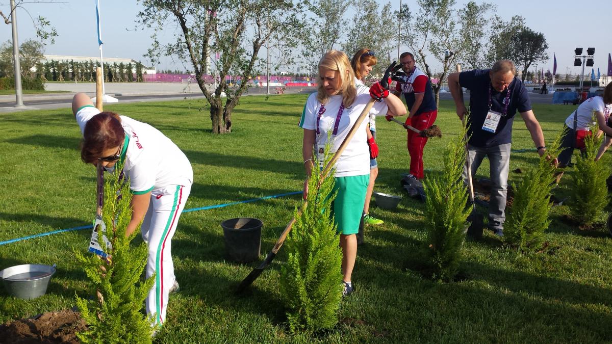 Две "български" дръвчета вече растат до Олимпийския стадион в Баку. Рано сутринта в последния ден на Европейските игри шефовете на мисии от отделните делегации на 50-те държави участници посадиха дръвчета на изпроводяк от Баку.