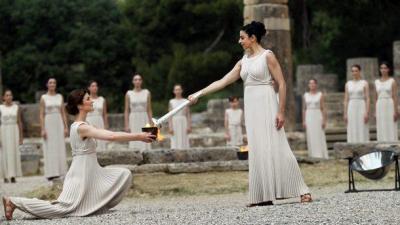 Пламъкът за Олимпийските игри в Бразилия беше запален в Южна Гърция. Актриса влезе в ролята на високопоставена жрица и запали факлата, използвайки слънчевите лъчи.